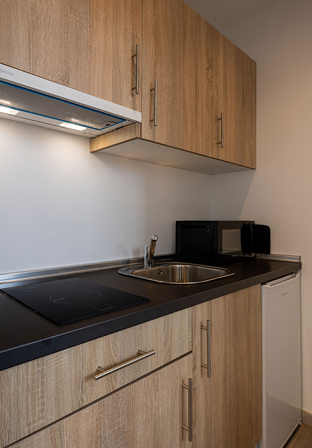 Además disponemos de 2 estudios con cocina, amueblados con sofá y escritorio, donde hacer su vida más independiente.