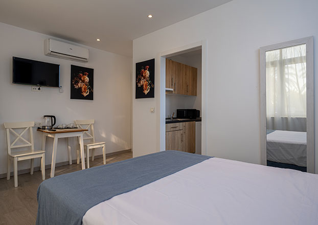 Las 16 habitaciones del Hotel Marina incluyen minibar y un hervidor de agua, además de TV de pantalla plana para tu comodidad. Disponen de terraza 11 de ellas, con vistas frontales y laterales.
