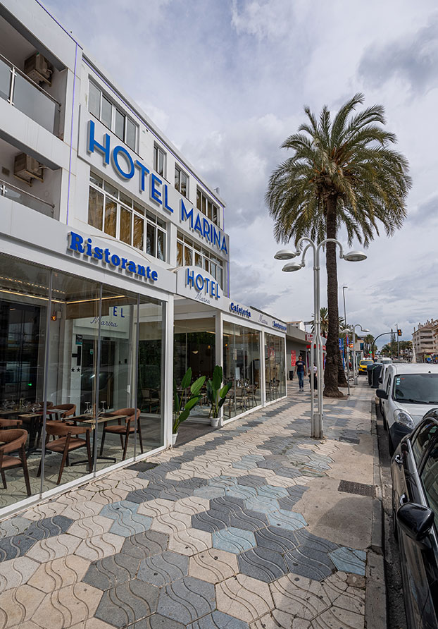 Hotel en Benalmádena, Hotel Marina Benalmádena. Reformado íntegramente en 2025, está ubicado a escasos metros de la playa y del animado puerto deportivo de Puerto Marina. Fusiona la calidez del Mediterráneo con el encanto andaluz y malagueño en un ambiente repleto de vida, muy cerca de la playa y del centro. Bajo el sol, disfrute de nuestra cocina española e italiana, explore las actividades recreativas de Benalmádena y viva una vivencia inolvidable junto al mar.
